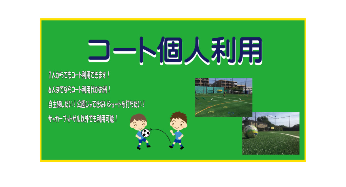コートを1人から気軽に使って頂くために個人利用を行っています。個人利用は、1度に6人までは個人利用の料金としてご利用いただけます。