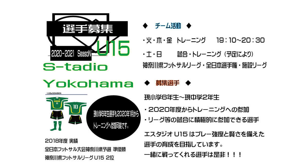 そんな悩みを持つ選手達には是非エスタジオU15で化けて欲しいです。