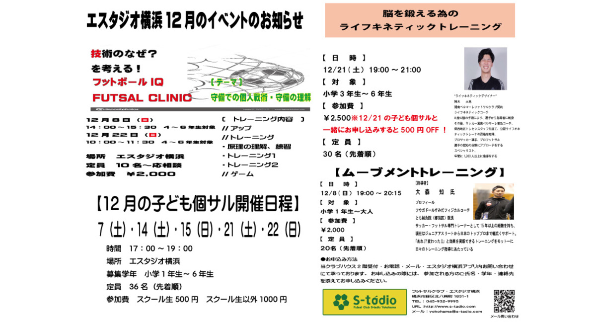 明日12/8はIQクリニックとムーブメントトレーニングが開催されます。