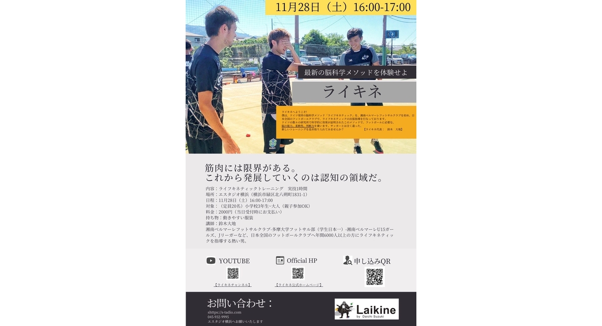 ライフキネティックは、久しぶりの開催となります。子ども個サルの後の開催なので、子ども個サル後に参加するのもいいかもしれませんね!こそ練は、朝の早い時間帯での開催になります。チームの練習前やチーム練習が休みの選手は、個人練習な場として参加してみませんか?