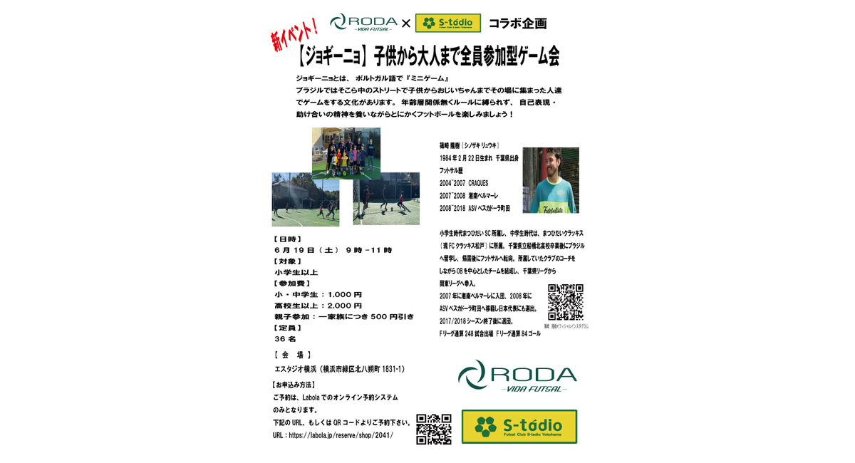 今週末の6/19(土)は「ジョギーニョ」が開催されます!