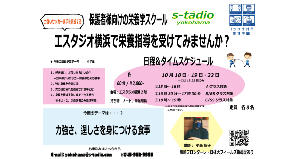 エスタジオ横浜では10月から栄養指導をスクール中にクラブハウス2階で受講できます!
