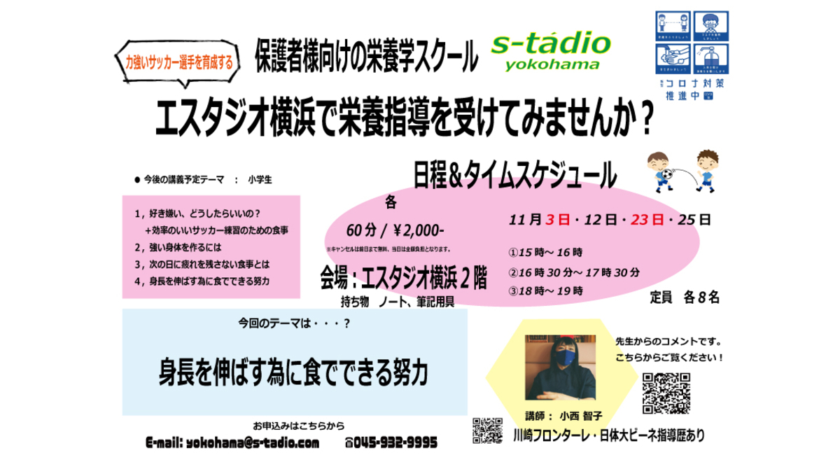 このエスタジオ横浜でのサッカー指導と体を作る材料であり、体を動かすエネルギー源の食事を両輪として育んだ体は成長と共に周りに比べ大きな差を感じることができると思います。