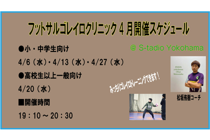 • 4月のゴレイロ(GK)クリニック開催日決定!参加者募集中!
