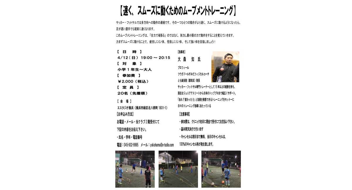 4月のムーブメントトレーニング開催日程が決定致しました。