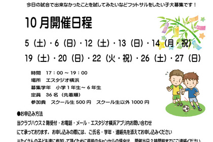 10月の子ども個サルの開催日程が決まりました。 スポーツの秋!フットサルするにもやりやすい気候になってきましたね。 フットサルをやりたい!ゲームをたくさんしたい!サッカー・フットサルが...
