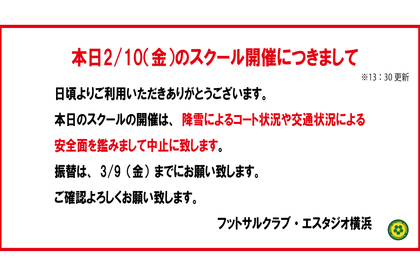 本日2/10(金)のスクール開催につきまして