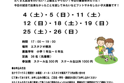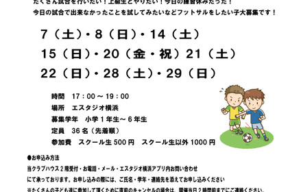 5月22日更新 エスタジオ横浜フットサルスクールのお知らせ
