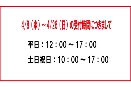 日頃よりご利用いただきありがとうございます。 緊急事態宣言を受けまして、4/8~4/26までのエスタジオ横浜の受付時間を下記のとおりとさせていただきます。 平日:12:00~17:00 土日祝日:...